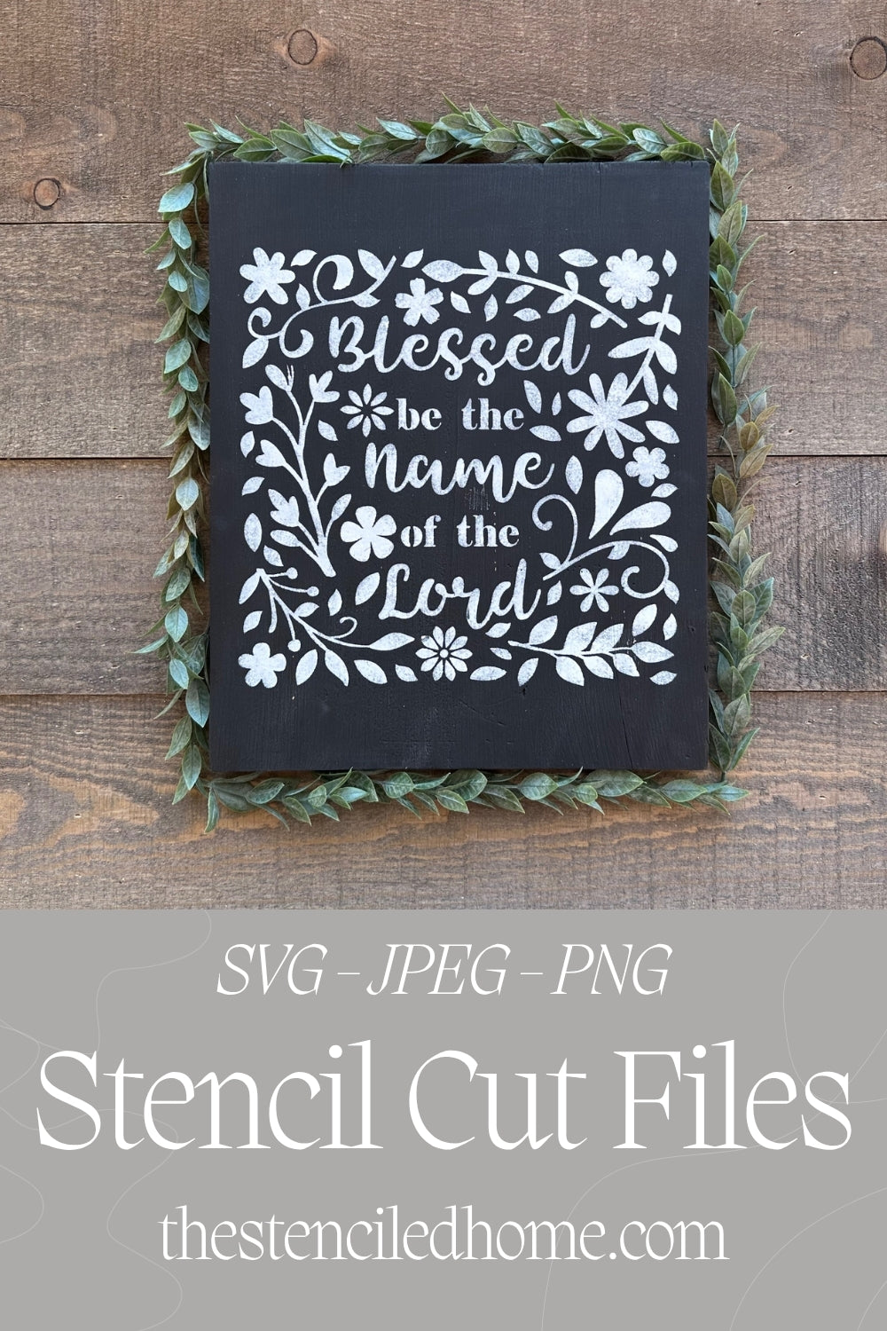 Blessed be the Name of the Lord Floral Stencil Cut File SVG JPEG PNG