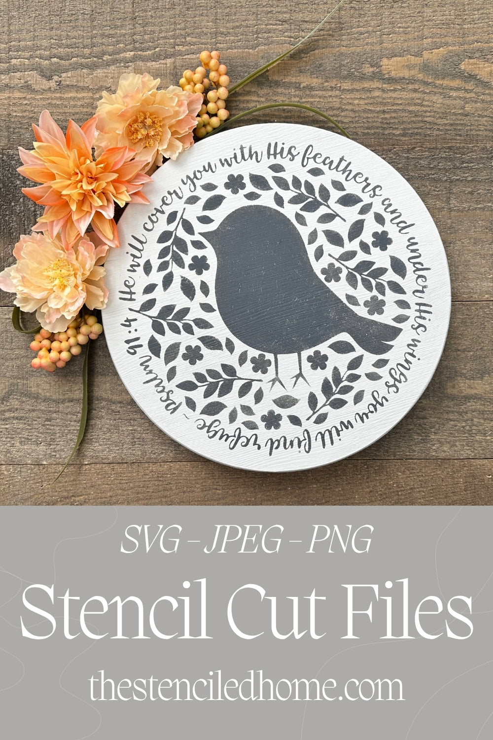 Psalm 91:4 Stencil Cut File SVG JPEG PNG Cut File