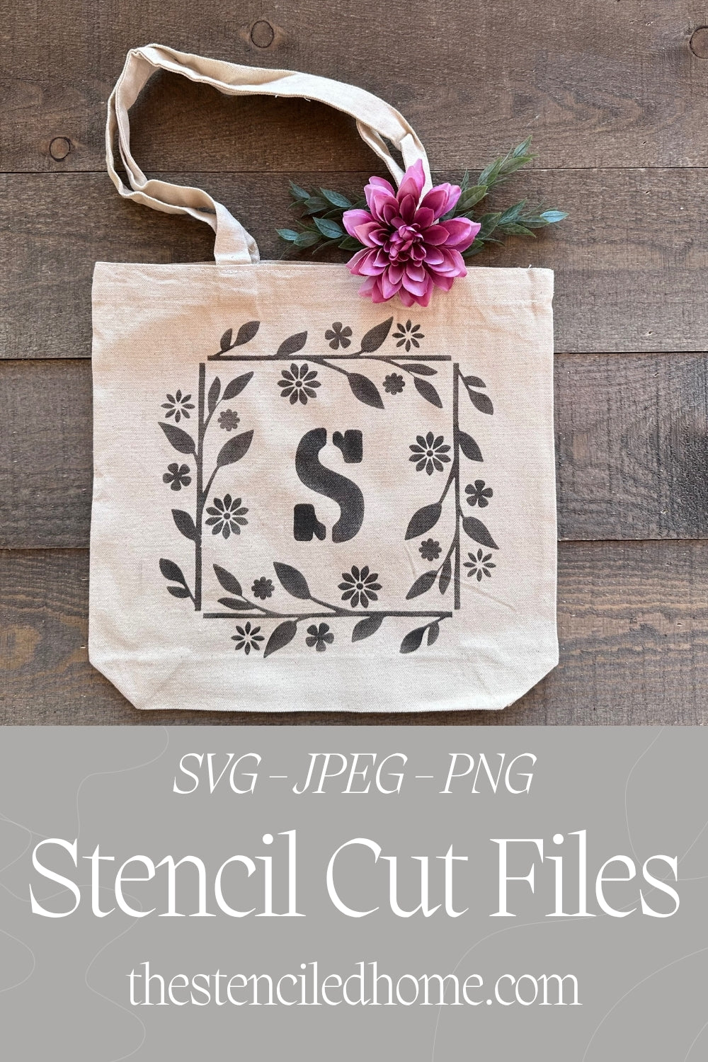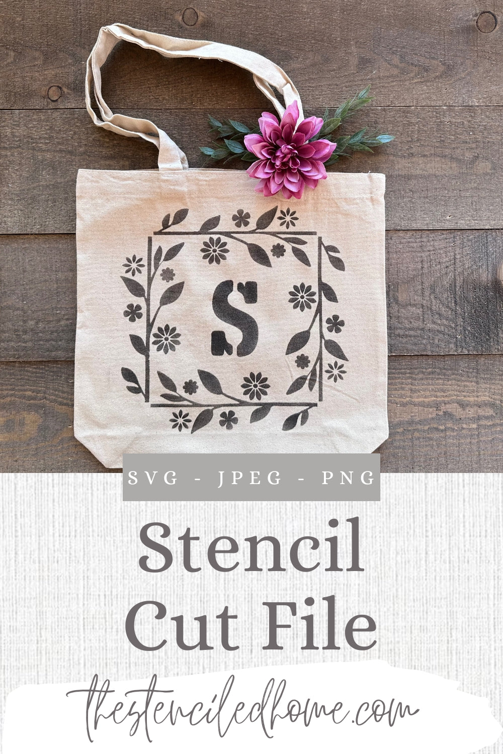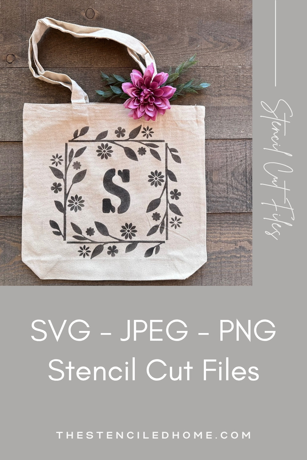 Square Floral Initial Frame Stencil Cut File SVG JPEG PNG