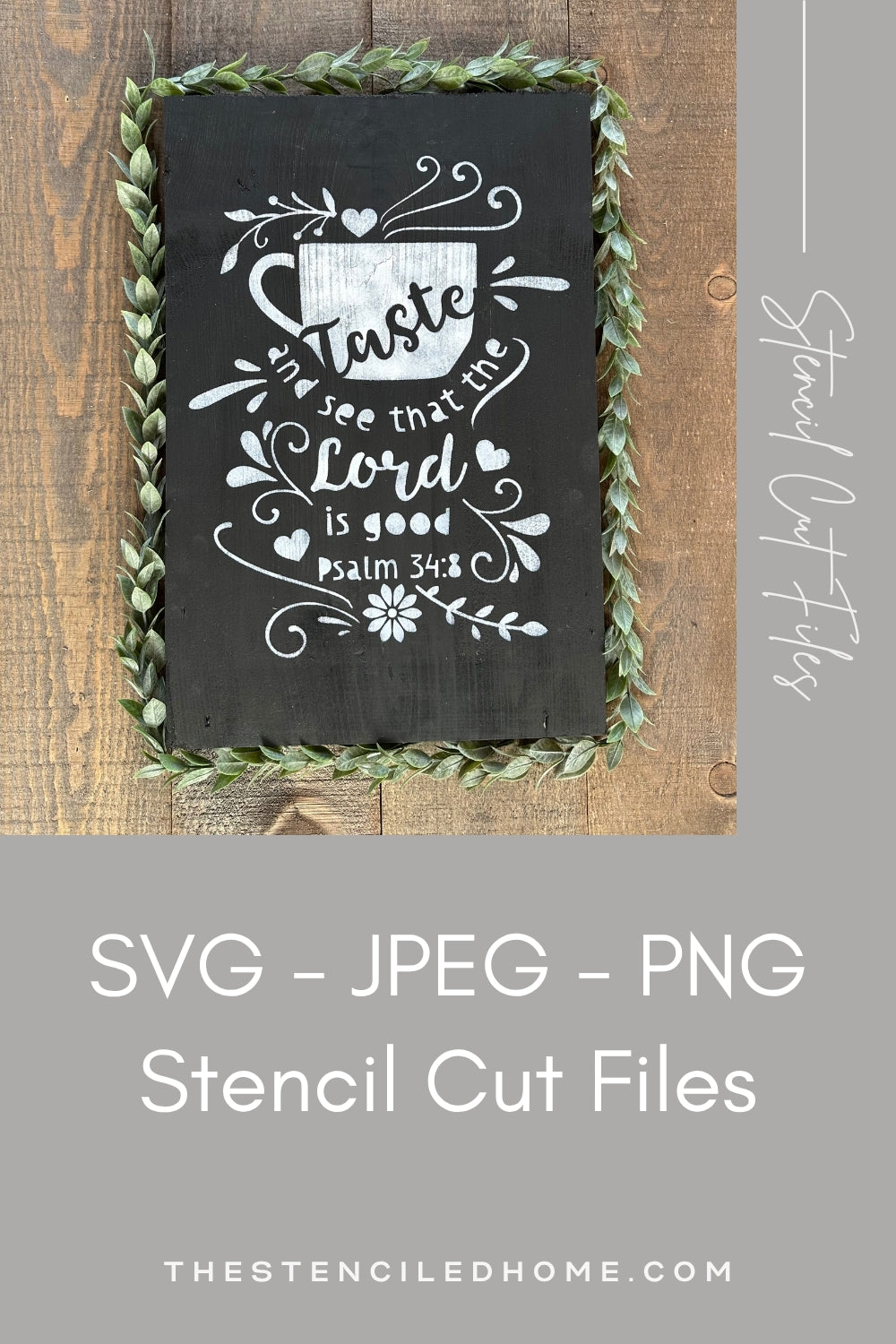 Taste and See that the Lord is Good Psalm 34:8 Stencil Cut File SVG JPEG PNG